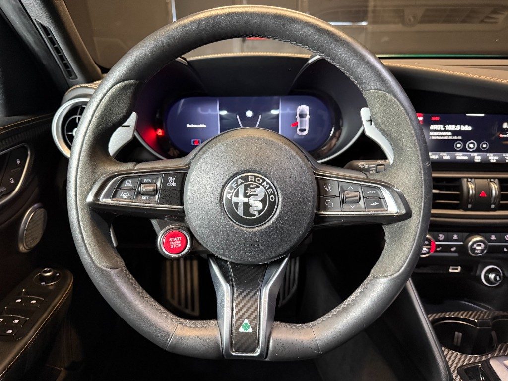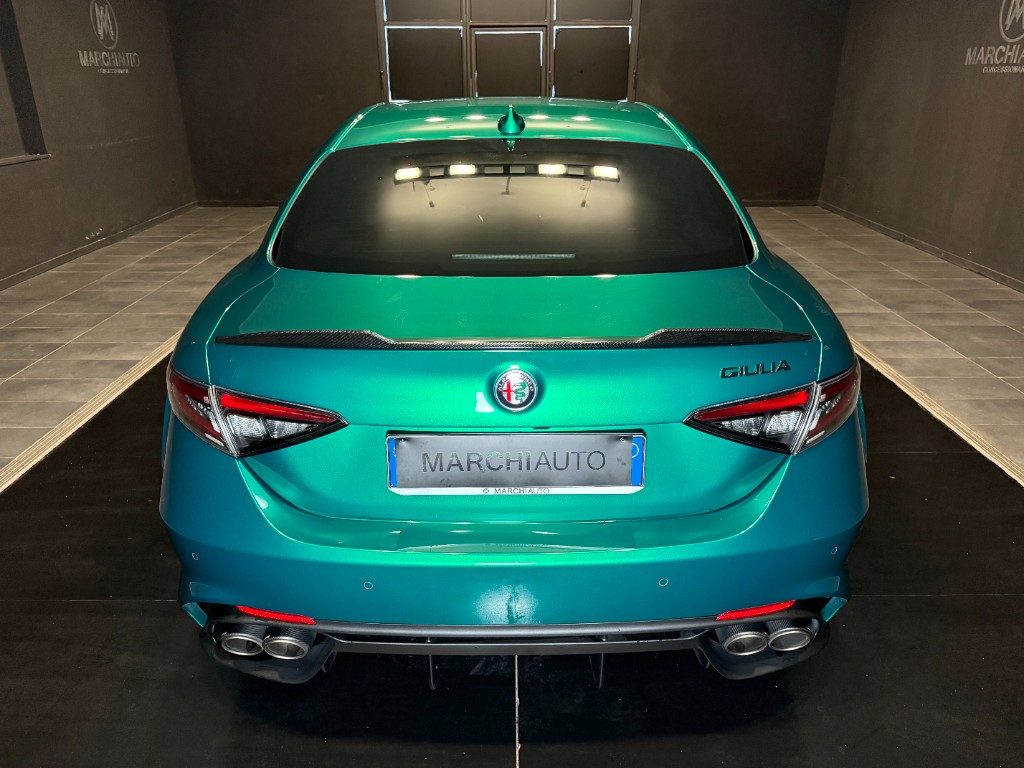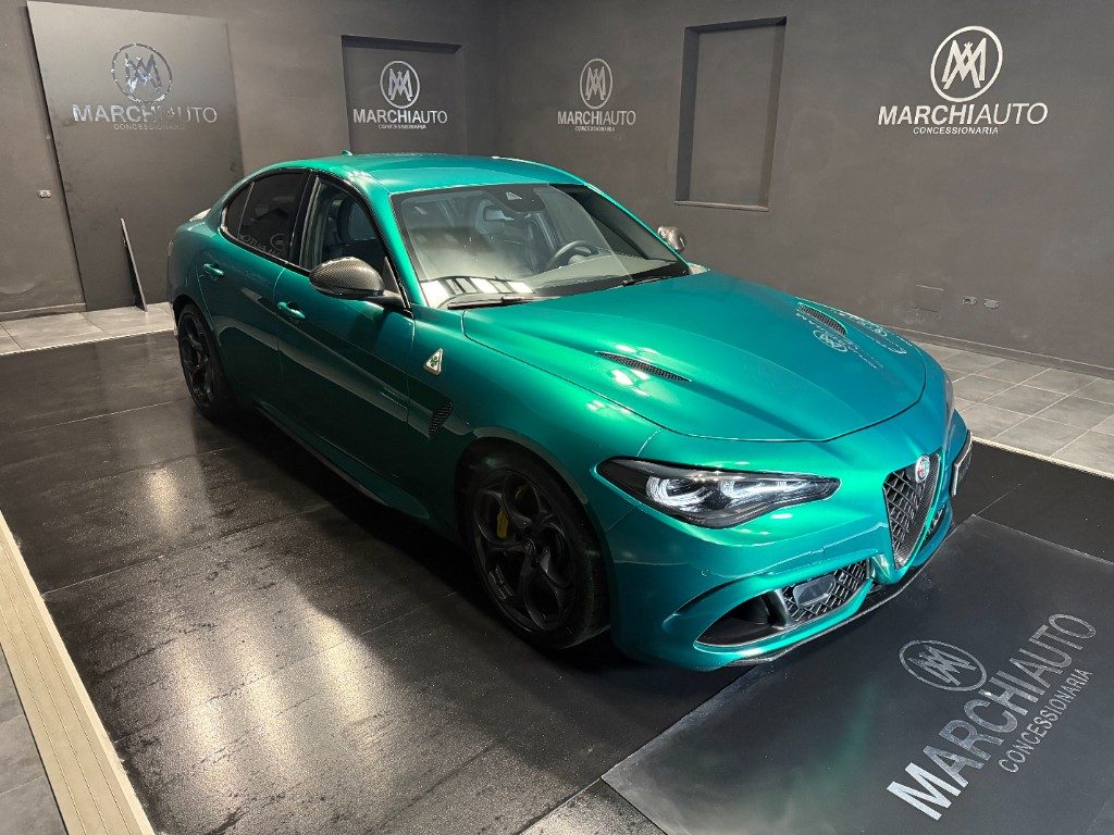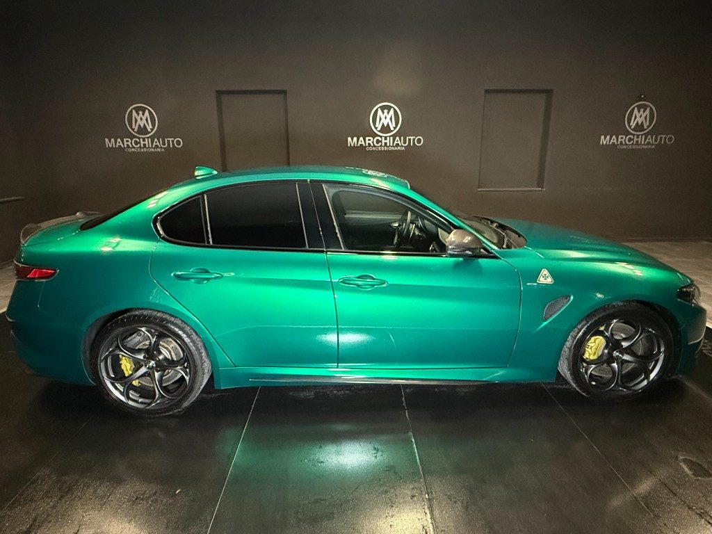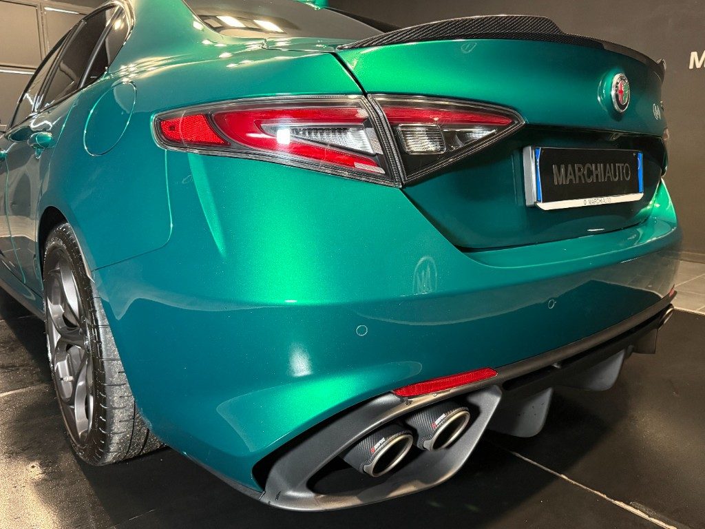 Marchi Auto propone Alfa Romeo Giulia 2.9 V6 Bi-Turbo AT8 Quadrifoglio 100° Anniversario usata, motore 2891cc 6T alimentato a benzina, cambio automatico a 8 marce, 26 cavalli fiscali / 381 kwatt. Carrozzeria di colore verde montreal metallizzato, auto omologata per 5 persone. Gli interni di questa ALFA ROMEO Giulia sono in pelle colore nero. Optionals inclusi nel prezzo: ABS, Adaptive Cruise Control, Airbag, Airbag laterali, Airbag Passeggero, Airbag testa, Alzacristalli elettrici, Android Auto, Apple CarPlay, Autoradio, Autoradio digitale, Bluetooth, Boardcomputer, Bracciolo, Cerchi in lega, Chiusura centralizzata, Climatizzatore, Controllo elettronico della corsia, Controllo trazione, Cruise Control, ESP, Fari LED, Frenata d'emergenza assistita, Hill holder, Immobilizzatore elettronico, Lettore CD, MP3, Regolazione elettrica sedili, Sedili sportivi, Sensore di luce, Sensore di pioggia, Sensori di parcheggio posteriori, Servosterzo, Sistema di avviso di distanza, Sistema di navigazione, Sospensioni pneumatiche, Specchietti laterali elettrici, Spoiler, Telecamera per parcheggio assistito, Telecamera posteriore, Touch screen, Trazione integrale, USB, Vetri oscurati, Vivavoce, Volante in pelle, Volante multifunzione. MARCHIAUTO