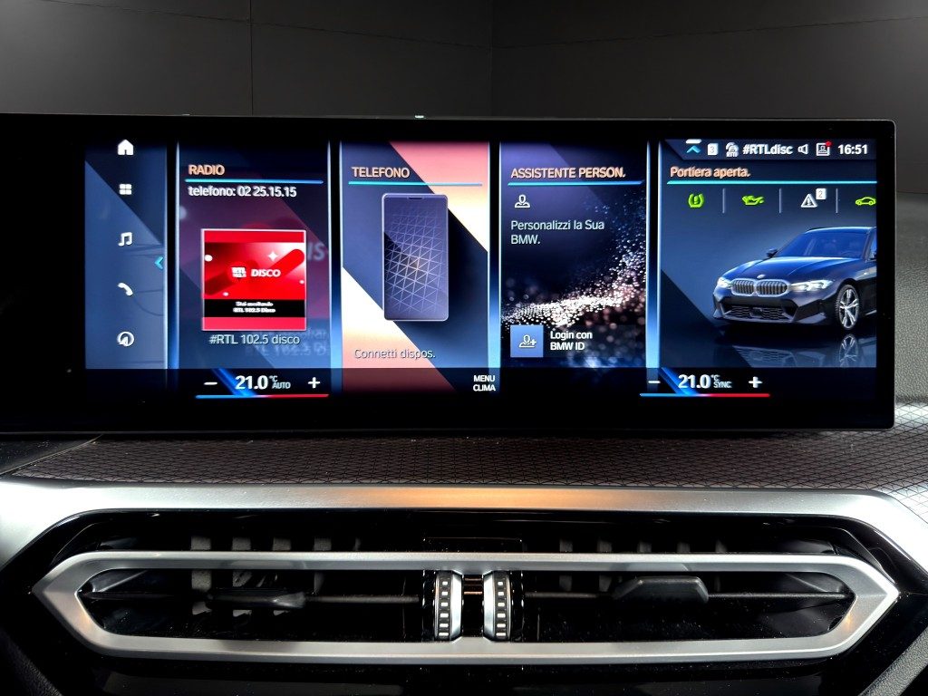 Marchi Auto propone Bmw 318 d 48V Touring Msport usata, motore 1995cc 6T alimentato a Elettrica/Diesel, cambio automatico a 8 marce, 20 cavalli fiscali / 110 kwatt. Carrozzeria di colore nero metallizzato, auto omologata per 5 persone. Gli interni di questa BMW 318 sono in pelle/tessuto colore nero. Optionals inclusi nel prezzo: ABS, Airbag, Airbag laterali, Airbag Passeggero, Airbag testa, Alzacristalli elettrici, Android Auto, Antifurto, Apple CarPlay, Autoradio, Autoradio digitale, Bluetooth, Boardcomputer, Bracciolo, Cerchi in lega, Chiusura centralizzata, Chiusura centralizzata telecomandata, Climatizzatore, Controllo elettronico della corsia, Controllo trazione, Cruise Control, ESP, Fari LED, Fendinebbia, Head-up display, Immobilizzatore elettronico, MP3, Sensore di luce, Sensore di pioggia, Sensori di parcheggio posteriori, Servosterzo, Sistema di navigazione, Specchietti laterali elettrici, Telecamera per parcheggio assistito, Touch screen, USB, Vetri oscurati, Vivavoce, Volante multifunzione. MARCHIAUTO