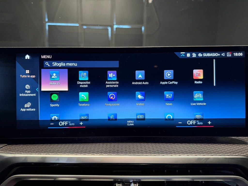 Marchi Auto propone Bmw 318 d 48V Touring Msport Pro usata, motore 1995cc 6T alimentato a Elettrica/Diesel, cambio automatico a 8 marce, 20 cavalli fiscali / 110 kwatt. Carrozzeria di colore nero pastello, auto omologata per 5 persone. Gli interni di questa BMW 318 sono in pelle/alcantara colore nero. Optionals inclusi nel prezzo: ABS, Airbag, Airbag laterali, Airbag Passeggero, Airbag testa, Alzacristalli elettrici, Android Auto, Antifurto, Apple CarPlay, Autoradio, Autoradio digitale, Bluetooth, Boardcomputer, Bracciolo, Cerchi in lega, Chiusura centralizzata, Climatizzatore, Climatizzatore automatico, 3 zone, Controllo elettronico della corsia, Controllo trazione, Cruise Control, ESP, Fari LED, Fendinebbia, Hill holder, Immobilizzatore elettronico, MP3, Porta USB e AUX, Sensore di luce, Sensore di pioggia, Sensori di parcheggio posteriori, Servosterzo, Sistema di navigazione, Specchietti laterali elettrici, Telecamera per parcheggio assistito, Touch screen, USB, Vetri oscurati, Vivavoce, Volante in pelle, Volante multifunzione. MARCHIAUTO