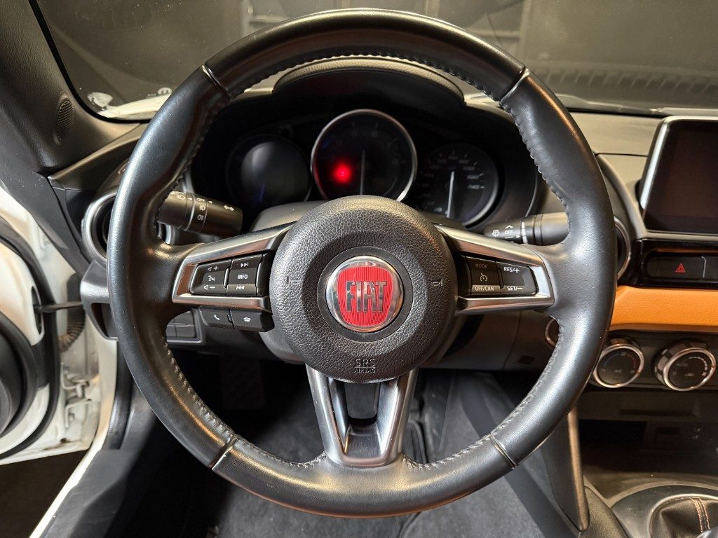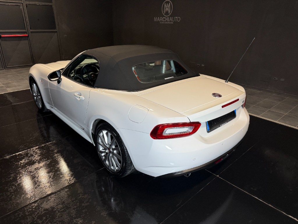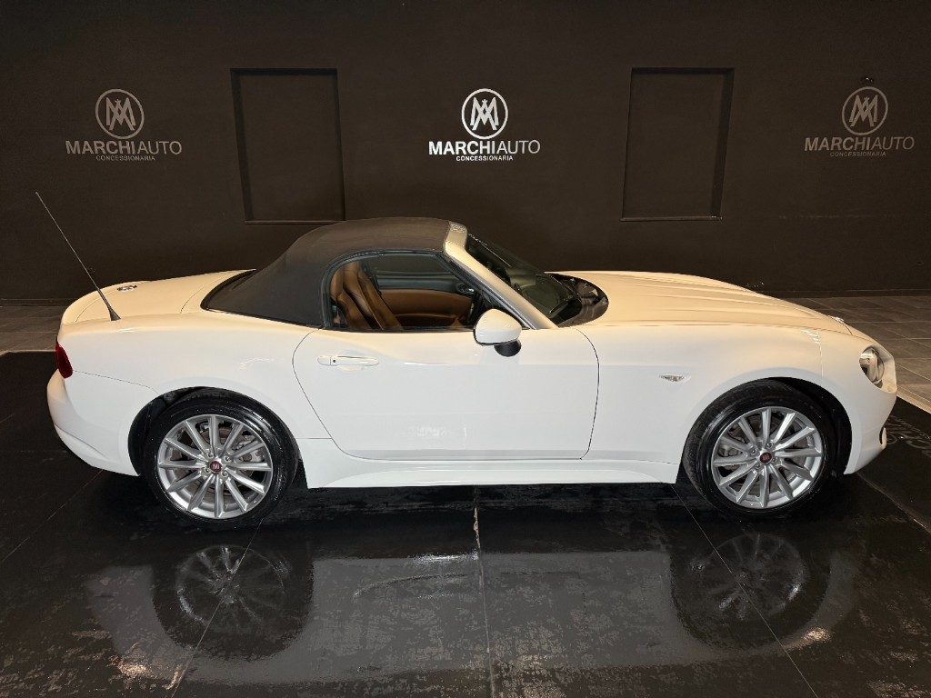 Marchi Auto propone Fiat 124 Spider 1.4 MultiAir Lusso usata, motore 1368cc Euro 6 alimentato a benzina, cambio manuale a 6 marce, 15 cavalli fiscali / 103 kwatt. Carrozzeria di colore bianco pastello, auto omologata per 2 persone. Gli interni di questa FIAT 124 Spider sono in pelle colore marrone. Optionals inclusi nel prezzo: ABS, Airbag, Airbag laterali, Airbag Passeggero, Alzacristalli elettrici, Autoradio, Bluetooth, Boardcomputer, Bracciolo, Cerchi in lega, Chiusura centralizzata, Climatizzatore, Controllo trazione, Cruise Control, ESP, Fendinebbia, Immobilizzatore elettronico, Interni in pelle, MP3, Regolazione elettrica sedili, Sensori di parcheggio posteriori, Servosterzo, Sistema di navigazione, Specchietti laterali elettrici, Volante multifunzione. MARCHIAUTO