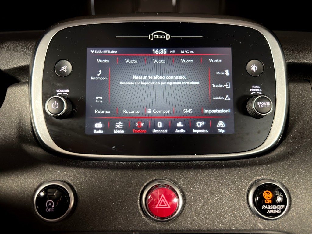 Marchi Auto propone Fiat 500X 1.3 MultiJet 95 CV Cross usata, motore 1248cc 6T Diesel, cambio manuale a 5 marce, 15 cavalli fiscali / 70 kwatt. Carrozzeria di colore blu metallizzato, auto omologata per 5 persone. Gli interni di questa FIAT 500X sono in pelle/tessuto colore nero. Optionals inclusi nel prezzo: ABS, Airbag, Airbag laterali, Airbag Passeggero, Airbag testa, Alzacristalli elettrici, Android Auto, Apple CarPlay, Autoradio, Autoradio digitale, Bluetooth, Boardcomputer, Bracciolo, Cerchi in lega, Chiusura centralizzata, Climatizzatore, Controllo elettronico della corsia, Controllo trazione, Cruise Control, ESP, Fendinebbia, Immobilizzatore elettronico, Isofix, MP3, Riconoscimento dei segnali stradali, Ruotino, Sensori di parcheggio anteriori, Sensori di parcheggio posteriori, Servosterzo, Specchietti laterali elettrici, Telecamera per parcheggio assistito, Touch screen, USB, Vetri oscurati, Vivavoce, Volante multifunzione. MARCHIAUTO