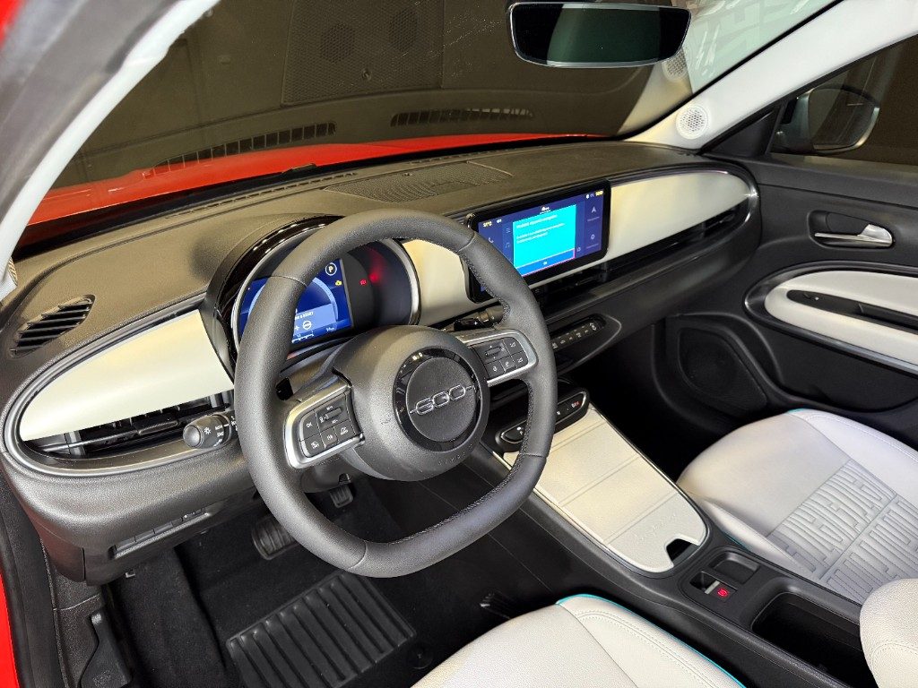 Marchi Auto propone Fiat 600 Hybrid 110 CV DCT MHEV La Prima Km 0, auto dotata di motore 1199cc 6T ad alimentazione ibrida, funzionante ad energia elettrica e benzina. cambio automatico a 6 marce, 14 cavalli fiscali / 74 kwatt. Carrozzeria di colore arancione metallizzato, auto omologata per 5 persone. Gli interni di questa FIAT 600 sono in pelle colore beige. Optionals inclusi nel prezzo: 360° camera, ABS, Adaptive Cruise Control, Airbag, Airbag laterali, Airbag Passeggero, Airbag testa, Alzacristalli elettrici, Android Auto, Apple CarPlay, Autoradio, Autoradio digitale, Bluetooth, Car Play, Controllo vocale, Frenata d'emergenza assistita, MP3, Porta USB, Retrocamera, Sensori di parcheggio posteriori, Sistema di navigazione, Sound system, Touch screen, USB, Vetri oscurati, Vivavoce, Volante multifunzione. MARCHIAUTO