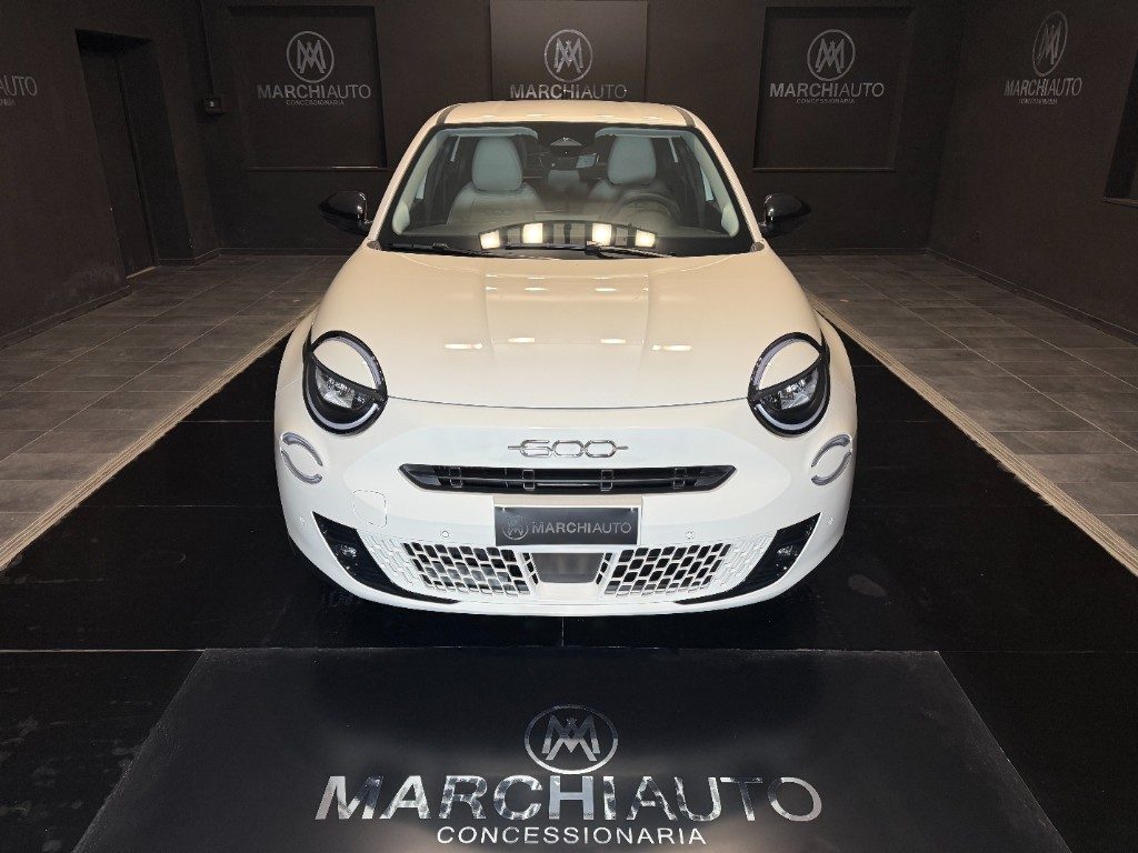 Marchi Auto propone Fiat 600 Hybrid 110 CV DCT MHEV La Prima II Km 0, auto dotata di motore 1199cc 6T ad alimentazione ibrida, funzionante ad energia elettrica e benzina. cambio automatico a 6 marce, 14 cavalli fiscali / 74 kwatt. Carrozzeria di colore bianco pastello, auto omologata per 5 persone. Gli interni di questa FIAT 600 sono in pelle colore beige. Optionals inclusi nel prezzo: ABS, Adaptive Cruise Control, Airbag, Airbag laterali, Airbag Passeggero, Airbag testa, Alzacristalli elettrici, Android Auto, Apple CarPlay, Autoradio, Autoradio digitale, Bluetooth, Boardcomputer, Bracciolo, Cerchi in lega, Chiusura centralizzata, Climatizzatore, Controllo elettronico della corsia, Controllo trazione, Controllo vocale, Cruise Control, ESP, Fari LED, Fendinebbia, Frenata d'emergenza assistita, Immobilizzatore elettronico, MP3, Riconoscimento dei segnali stradali, Sensore di luce, Sensore di pioggia, Sensori di parcheggio posteriori, Servosterzo, Sistema di navigazione, Sound system, Specchietti laterali elettrici, Telecamera per parcheggio assistito, Touch screen, USB, Vivavoce, Volante multifunzione. MARCHIAUTO