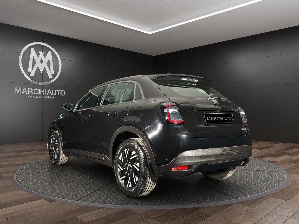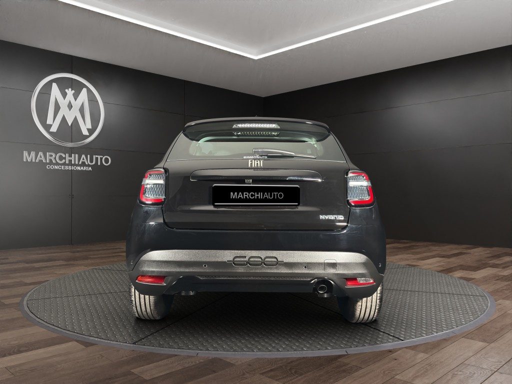 Marchi Auto propone Fiat 600 Hybrid 110 CV DCT MHEV (Pack Comfort) Km 0, auto dotata di motore 1199cc 6T ad alimentazione ibrida, funzionante ad energia elettrica e benzina. cambio automatico a 6 marce, 14 cavalli fiscali / 74 kwatt. Carrozzeria di colore nero pastello, auto omologata per 5 persone. Gli interni di questa FIAT 600 sono in tessuto colore nero. Optionals inclusi nel prezzo: ABS, Airbag, Airbag laterali, Airbag Passeggero, Airbag testa, Alzacristalli elettrici, Android Auto, Apple CarPlay, Autoradio, Autoradio digitale, Bluetooth, Boardcomputer, Bracciolo, Cambio Automatico, Car Play, Chiusura centralizzata, Climatizzatore, Controllo elettronico della corsia, Controllo trazione, Cruise Control, ESP, Fari LED, Frenata d'emergenza assistita, Immobilizzatore elettronico, Isofix, MP3, Porta USB, Retrocamera, Sensore di luce, Sensore di pioggia, Sensori di parcheggio anteriori, Sensori di parcheggio posteriori, Servosterzo, Sistema di navigazione, Specchietti laterali elettrici, Telecamera per parcheggio assistito, Touch screen, USB, Vivavoce, Volante multifunzione. MARCHIAUTO