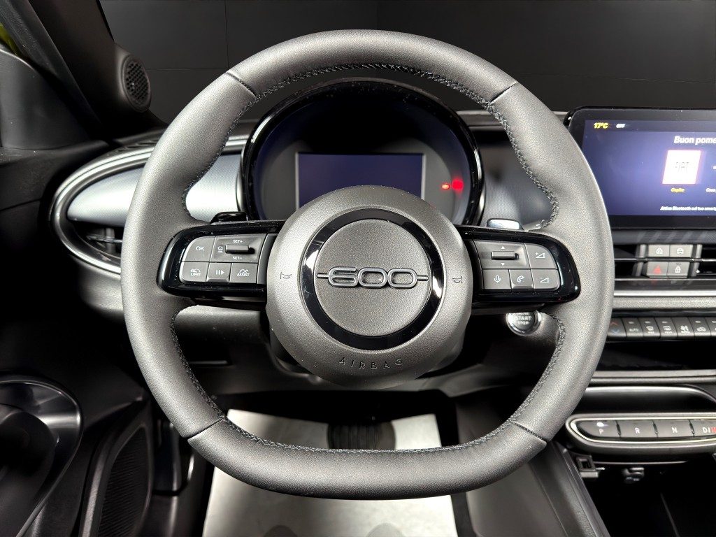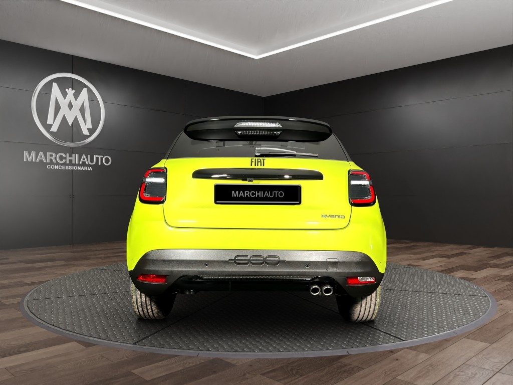 Marchi Auto propone Fiat 600 Hybrid 145 CV DCT MHEV Sport Edizione Milano Corti nuova, auto dotata di motore 1199cc 6T ad alimentazione ibrida, funzionante ad energia elettrica e benzina. cambio automatico a 6 marce, 14 cavalli fiscali / 100 kwatt. Carrozzeria di colore verde metallizzato, auto omologata per 5 persone. Gli interni di questa FIAT 600 sono in pelle/tessuto colore nero. Optionals inclusi nel prezzo: ABS, Adaptive Cruise Control, Airbag, Airbag laterali, Airbag Passeggero, Airbag testa, Alzacristalli elettrici, Android Auto, Apple CarPlay, Autoradio, Autoradio digitale, Bluetooth, Boardcomputer, Bracciolo, Cerchi in lega, Chiusura centralizzata, Climatizzatore, Controllo elettronico della corsia, Controllo trazione, Controllo vocale, Cruise Control, ESP, Fari LED, Fendinebbia, Frenata d'emergenza assistita, Immobilizzatore elettronico, Isofix, MP3, Regolazione elettrica sedili, Riconoscimento dei segnali stradali, Sensore di luce, Sensore di pioggia, Sensori di parcheggio posteriori, Servosterzo, Sistema di navigazione, Sound system, Specchietti laterali elettrici, Telecamera per parcheggio assistito, Touch screen, USB, Vetri oscurati, Vivavoce, Volante in pelle, Volante multifunzione. MARCHIAUTO