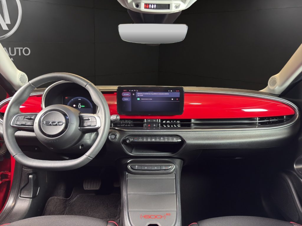 Marchi Auto propone Fiat 600e Red 54Kw usata, motore ZEuro alimentato a Elettrica, cambio automatico a 1 marce, cavalli fiscali / 62 kwatt. Carrozzeria di colore rosso pastello, auto omologata per 5 persone. Gli interni di questa FIAT 600e sono in tessuto colore grigio. Optionals inclusi nel prezzo: ABS, Airbag, Airbag laterali, Airbag Passeggero, Airbag testa, Autoradio, Autoradio digitale, Bluetooth, Bracciolo, Chiusura centralizzata, Climatizzatore, Controllo trazione, Cruise Control, ESP, Fari LED, Fendinebbia, Frenata d'emergenza assistita, Immobilizzatore elettronico, Sensore di luce, Sensore di pioggia, Sensori di parcheggio posteriori, Servosterzo, Specchietti laterali elettrici. MARCHIAUTO