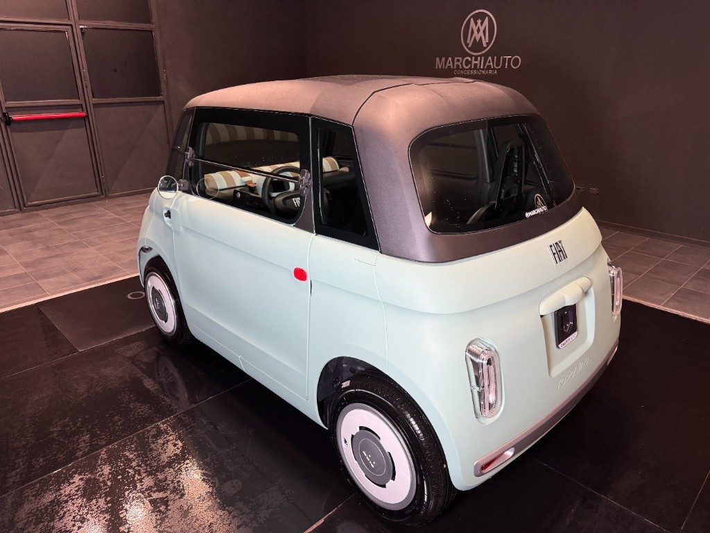 Marchi Auto propone Fiat Topolino 6kw usata, motore ZEuro alimentato a Elettrica, cambio automatico a 1 marce, 0 cavalli fiscali / 6 kwatt. Carrozzeria di colore verde pastello, auto omologata per 2 persone. Gli interni di questa FIAT Topolino sono in tessuto colore nero. Optionals inclusi nel prezzo: Fari LED, Tetto panorama. MARCHIAUTO