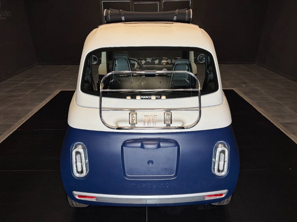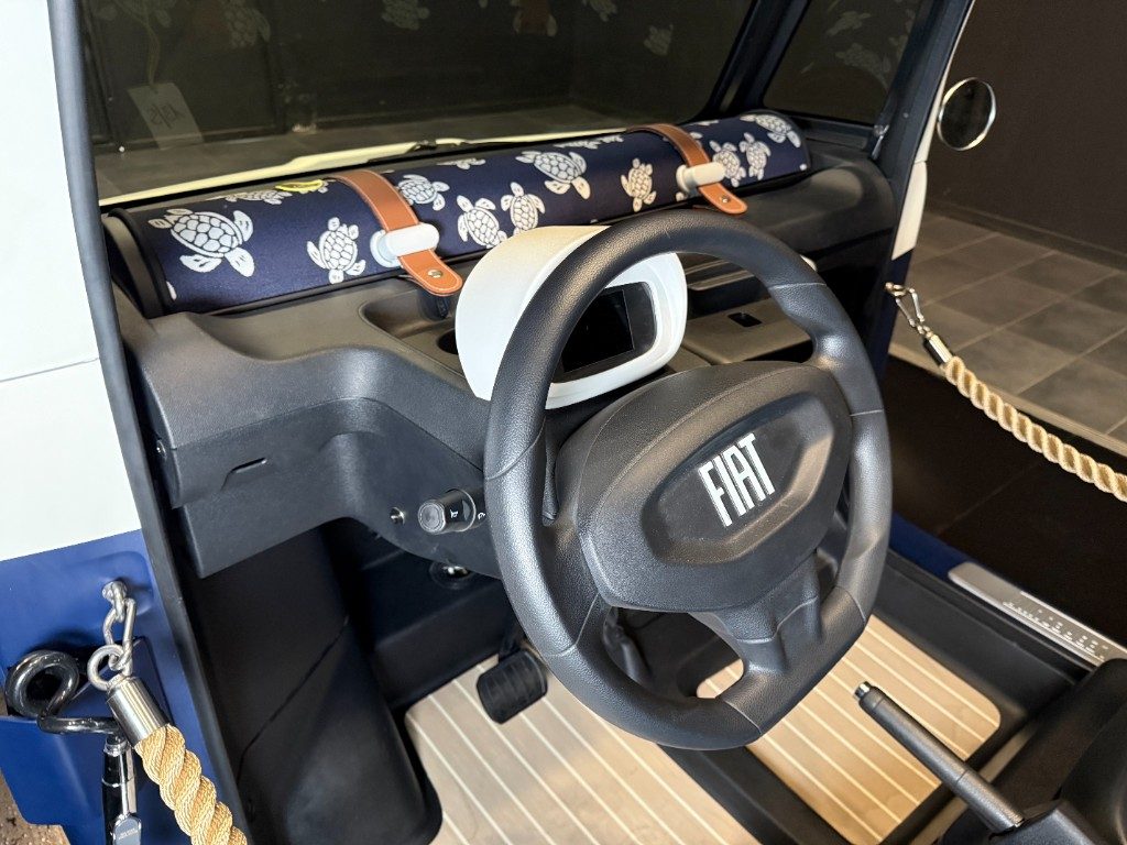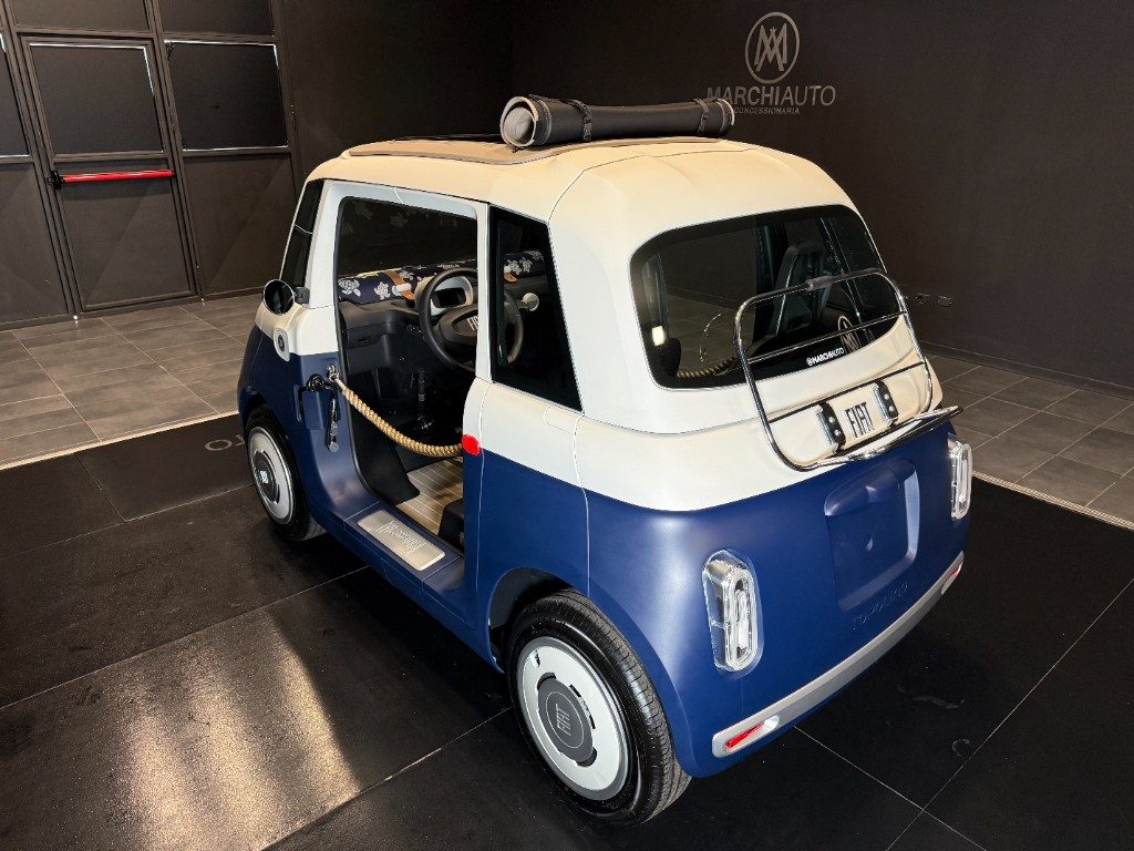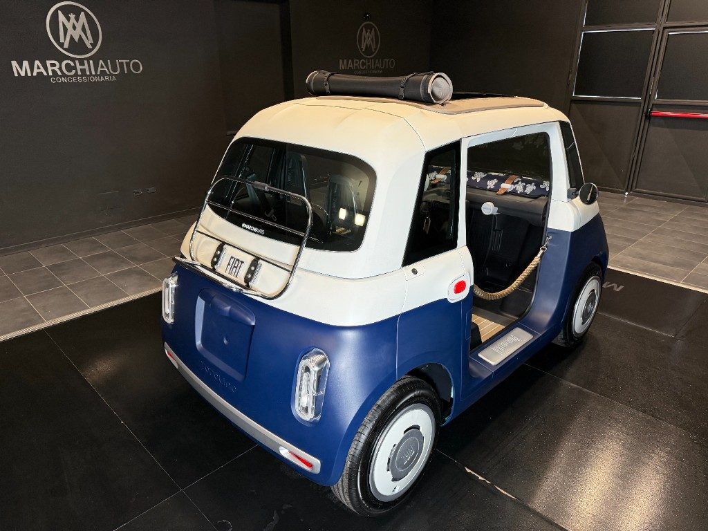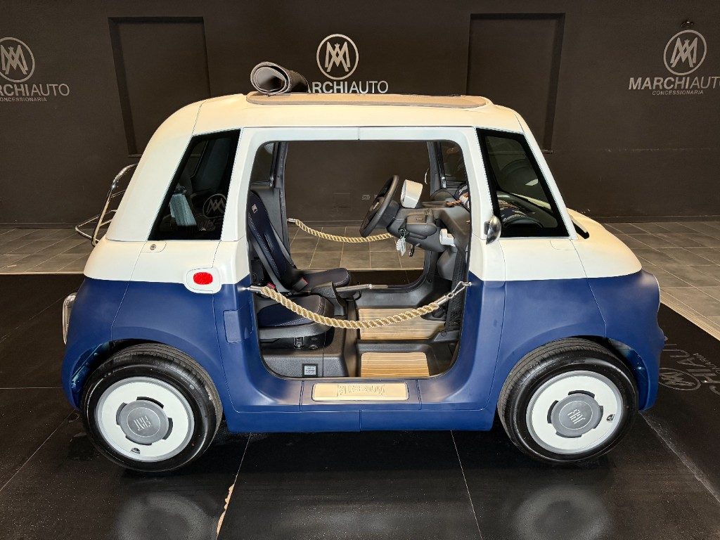 Marchi Auto propone Fiat Topolino Vilebrequin nuova, motore ZEuro alimentato a benzina, cambio automatico a marce, cavalli fiscali / 6 kwatt. Carrozzeria di colore blu pastello, auto omologata per persone. Gli interni di questa FIAT Topolino sono in tessuto colore blu. Optionals inclusi nel prezzo: Fari LED, Tettuccio apribile. MARCHIAUTO