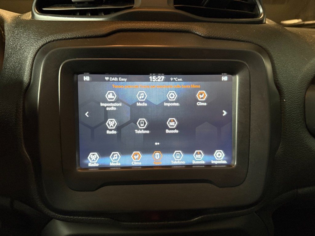 Marchi Auto propone Jeep Renegade 1.6 Mjt 120 CV Limited usata, motore 1598cc 6T Diesel, cambio manuale a 6 marce, 17 cavalli fiscali / 88 kwatt. Carrozzeria di colore argento metallizzato, auto omologata per 5 persone. Gli interni di questa JEEP Renegade sono in tessuto colore nero. Optionals inclusi nel prezzo: ABS, Adaptive Cruise Control, Airbag, Airbag laterali, Airbag Passeggero, Airbag testa, Alzacristalli elettrici, Autoradio, Autoradio digitale, Bluetooth, Bracciolo, Cerchi in lega, Climatizzatore, Controllo elettronico della corsia, Cruise Control, Fendinebbia, Frenata d'emergenza assistita, MP3, Regolazione elettrica sedili, Ruota di scorta, Sensori di parcheggio posteriori, Specchietti laterali elettrici, Touch screen, USB, Vivavoce, Volante multifunzione. MARCHIAUTO