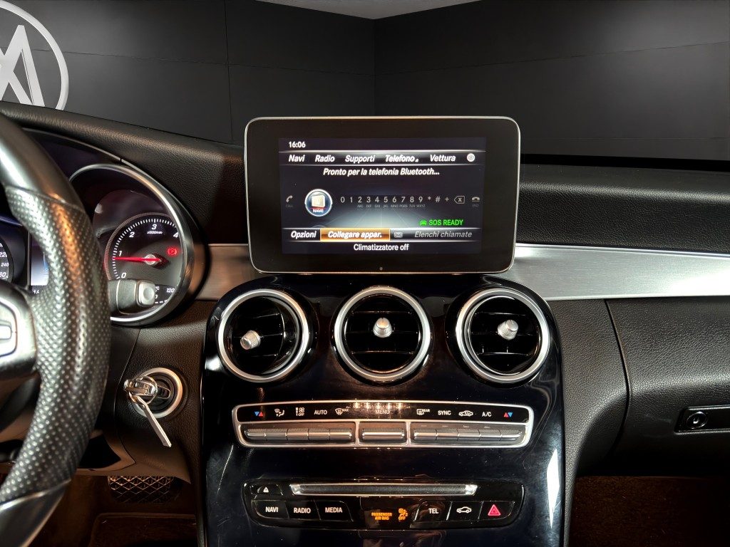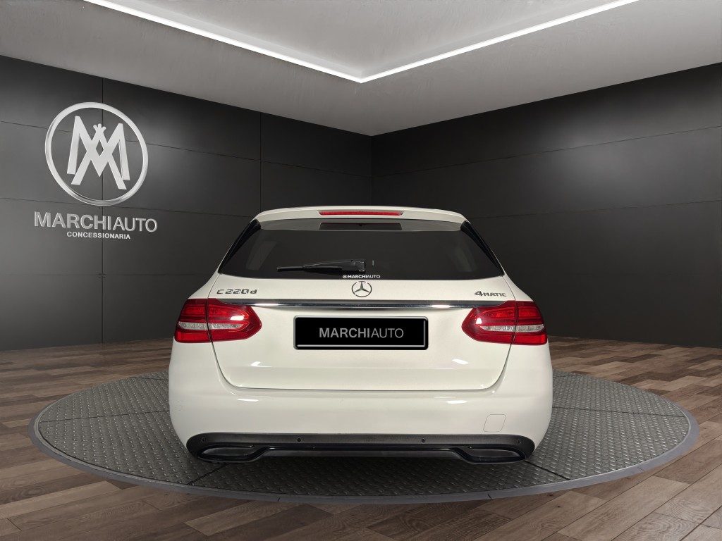 Marchi Auto propone Mercedes-benz C 220 d S.W. 4Matic Auto Sport Force usata, motore 2143cc Euro 6 Diesel, cambio automatico a 7 marce, 21 cavalli fiscali / 125 kwatt. Carrozzeria di colore bianco pastello, auto omologata per 5 persone. Gli interni di questa MERCEDES-BENZ C 220 sono in pelle/tessuto colore nero. Optionals inclusi nel prezzo: ABS, Airbag, Airbag laterali, Airbag Passeggero, Airbag testa, Alzacristalli elettrici, Autoradio, Bluetooth, Boardcomputer, Bracciolo, Cerchi in lega, Chiusura centralizzata, Climatizzatore, Controllo trazione, Cruise Control, ESP, Fari LED, Frenata d'emergenza assistita, Immobilizzatore elettronico, MP3, Regolazione elettrica sedili, Sensore di pioggia, Sensori di parcheggio anteriori, Sensori di parcheggio posteriori, Servosterzo, Sospensioni pneumatiche, Specchietti laterali elettrici, Telecamera per parcheggio assistito, USB, Vivavoce, Volante multifunzione. MARCHIAUTO