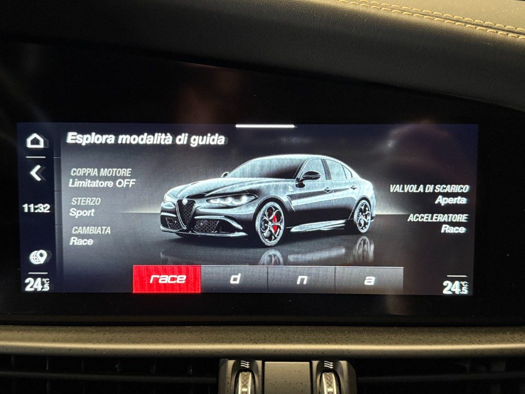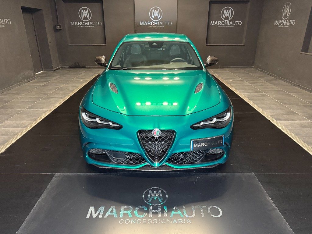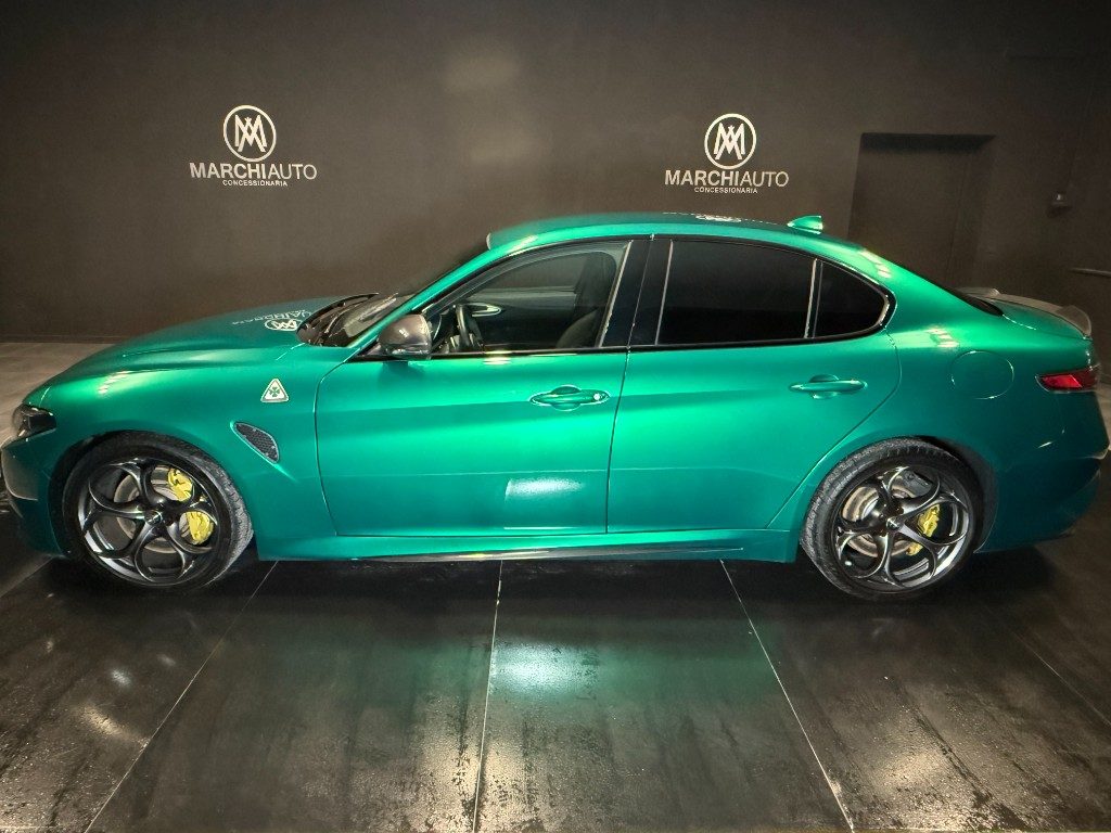 Marchi Auto propone Alfa Romeo Giulia 2.9 V6 Bi-Turbo AT8 Quadrifoglio 100° Anniversario usata, motore 2891cc 6T alimentato a benzina, cambio automatico a 8 marce, 26 cavalli fiscali / 381 kwatt. Carrozzeria di colore verde montreal metallizzato, auto omologata per 5 persone. Gli interni di questa ALFA ROMEO Giulia sono in pelle colore nero. Optionals inclusi nel prezzo: ABS, Adaptive Cruise Control, Airbag, Airbag laterali, Airbag Passeggero, Airbag testa, Alzacristalli elettrici, Android Auto, Apple CarPlay, Autoradio, Autoradio digitale, Bluetooth, Boardcomputer, Bracciolo, Cerchi in lega, Chiusura centralizzata, Climatizzatore, Controllo elettronico della corsia, Controllo trazione, Cruise Control, ESP, Fari LED, Frenata d'emergenza assistita, Hill holder, Immobilizzatore elettronico, Lettore CD, MP3, Regolazione elettrica sedili, Sedili sportivi, Sensore di luce, Sensore di pioggia, Sensori di parcheggio posteriori, Servosterzo, Sistema di avviso di distanza, Sistema di navigazione, Sospensioni pneumatiche, Specchietti laterali elettrici, Spoiler, Telecamera per parcheggio assistito, Telecamera posteriore, Touch screen, Trazione integrale, USB, Vetri oscurati, Vivavoce, Volante in pelle, Volante multifunzione. MARCHIAUTO