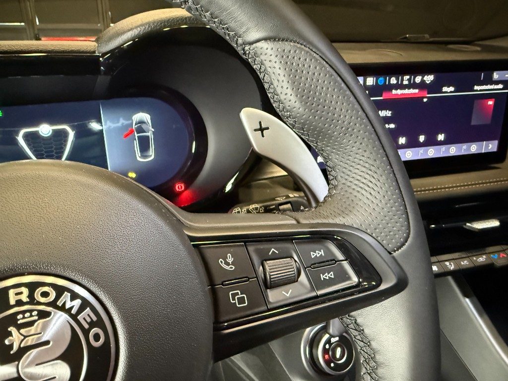 Marchi Auto propone Alfa Romeo Tonale 1.5 160 CV MHEV TCT7 Veloce Km 0, auto dotata di motore 1469cc 6T ad alimentazione ibrida, funzionante ad energia elettrica e benzina. cambio sequenziale a 7 marce, 16 cavalli fiscali / 118 kwatt. Carrozzeria di colore grigio scuro metallizzato, auto omologata per 5 persone. Gli interni di questa ALFA ROMEO Tonale sono in pelle/tessuto colore nero. Optionals inclusi nel prezzo: ABS, Adaptive Cruise Control, Airbag, Airbag laterali, Airbag Passeggero, Airbag testa, Alzacristalli elettrici, Android Auto, Apple CarPlay, Autoradio, Autoradio digitale, Bluetooth, Bracciolo, Cerchi in lega, Chiusura centralizzata, Climatizzatore, Controllo elettronico della corsia, Controllo trazione, Controllo vocale, Cruise Control, ESP, Fari LED, Frenata d'emergenza assistita, Immobilizzatore elettronico, Luci diurne LED, MP3, Regolazione elettrica sedili, Retrocamera, Riconoscimento dei segnali stradali, Sensore di luce, Sensori di parcheggio posteriori, Servosterzo, Sistema di navigazione, Sospensioni pneumatiche, Sound system, Specchietti laterali elettrici, Telecamera per parcheggio assistito, Touch screen, USB, Vivavoce, Volante multifunzione. MARCHIAUTO