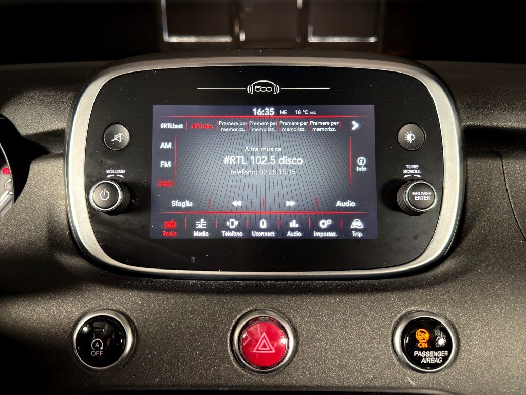 Marchi Auto propone Fiat 500X 1.3 MultiJet 95 CV Cross usata, motore 1248cc 6T Diesel, cambio manuale a 5 marce, 15 cavalli fiscali / 70 kwatt. Carrozzeria di colore blu metallizzato, auto omologata per 5 persone. Gli interni di questa FIAT 500X sono in pelle/tessuto colore nero. Optionals inclusi nel prezzo: ABS, Airbag, Airbag laterali, Airbag Passeggero, Airbag testa, Alzacristalli elettrici, Android Auto, Apple CarPlay, Autoradio, Autoradio digitale, Bluetooth, Boardcomputer, Bracciolo, Cerchi in lega, Chiusura centralizzata, Climatizzatore, Controllo elettronico della corsia, Controllo trazione, Cruise Control, ESP, Fendinebbia, Immobilizzatore elettronico, Isofix, MP3, Riconoscimento dei segnali stradali, Ruotino, Sensori di parcheggio anteriori, Sensori di parcheggio posteriori, Servosterzo, Specchietti laterali elettrici, Telecamera per parcheggio assistito, Touch screen, USB, Vetri oscurati, Vivavoce, Volante multifunzione. MARCHIAUTO