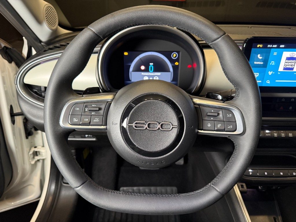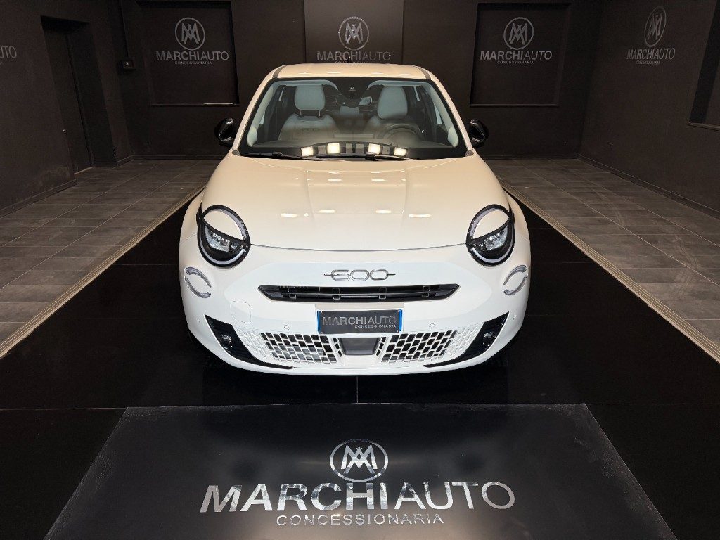 Marchi Auto propone Fiat 600 Hybrid 100 CV DCT MHEV La Prima usata, auto dotata di motore 1199cc 6T ad alimentazione ibrida, funzionante ad energia elettrica e benzina. cambio automatico a 6 marce, 14 cavalli fiscali / 74 kwatt. Carrozzeria di colore bianco pastello, auto omologata per 5 persone. Gli interni di questa FIAT 600 sono in pelle colore beige. Optionals inclusi nel prezzo: 360° camera, ABS, Adaptive Cruise Control, Airbag, Airbag laterali, Airbag Passeggero, Alzacristalli elettrici, Android Auto, Apple CarPlay, Autoradio, Autoradio digitale, Bluetooth, Boardcomputer, Bracciolo, Cerchi in lega, Chiusura centralizzata, Climatizzatore, Controllo trazione, Controllo vocale, Cruise Control, ESP, Fari LED, Fendinebbia, Frenata d'emergenza assistita, Immobilizzatore elettronico, Isofix, Luci diurne, MP3, Riconoscimento dei segnali stradali, Sedili massaggianti, Sensore di pioggia, Sensori di parcheggio anteriori, Sensori di parcheggio posteriori, Servosterzo, Sistema di navigazione, Sound system, Specchietti laterali elettrici, Telecamera per parcheggio assistito, Touch screen, USB, Vetri oscurati, Vivavoce, Volante multifunzione. MARCHIAUTO
