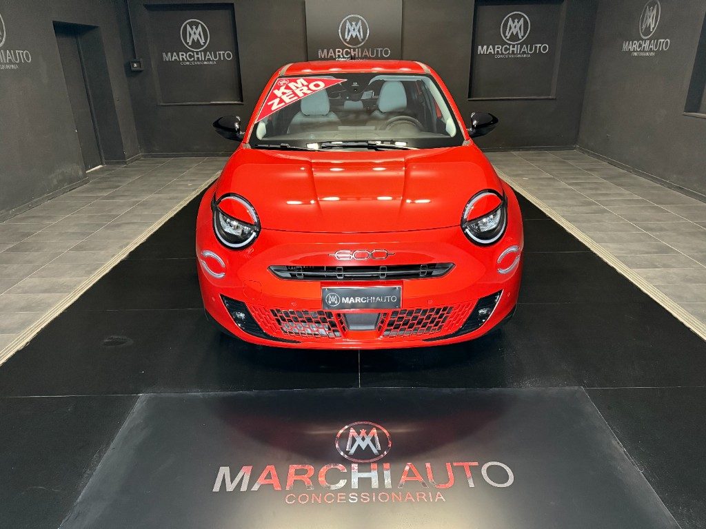 Marchi Auto propone Fiat 600 Hybrid 110 CV DCT MHEV La Prima Km 0, auto dotata di motore 1199cc 6T ad alimentazione ibrida, funzionante ad energia elettrica e benzina. cambio automatico a 6 marce, 14 cavalli fiscali / 74 kwatt. Carrozzeria di colore arancione metallizzato, auto omologata per 5 persone. Gli interni di questa FIAT 600 sono in pelle colore beige. Optionals inclusi nel prezzo: 360° camera, ABS, Adaptive Cruise Control, Airbag, Airbag laterali, Airbag Passeggero, Airbag testa, Alzacristalli elettrici, Android Auto, Apple CarPlay, Autoradio, Autoradio digitale, Bluetooth, Car Play, Controllo vocale, Frenata d'emergenza assistita, MP3, Porta USB, Retrocamera, Sensori di parcheggio posteriori, Sistema di navigazione, Sound system, Touch screen, USB, Vetri oscurati, Vivavoce, Volante multifunzione. MARCHIAUTO
