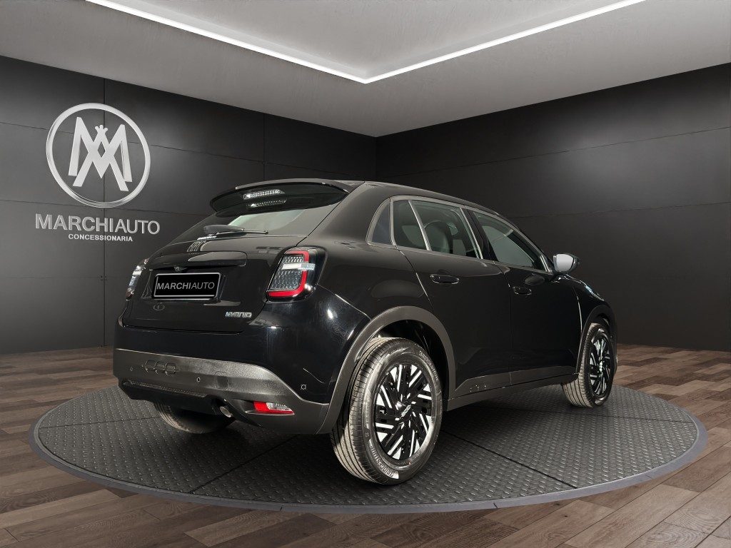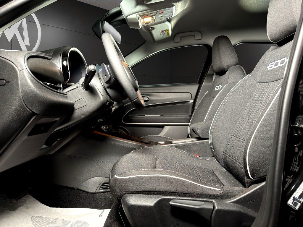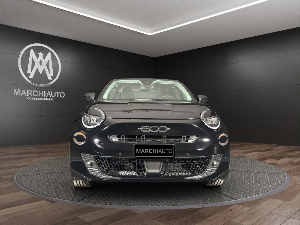 Marchi Auto propone Fiat 600 Hybrid 110 CV DCT MHEV (Pack Comfort) Km 0, auto dotata di motore 1199cc 6T ad alimentazione ibrida, funzionante ad energia elettrica e benzina. cambio automatico a 6 marce, 14 cavalli fiscali / 74 kwatt. Carrozzeria di colore nero pastello, auto omologata per 5 persone. Gli interni di questa FIAT 600 sono in tessuto colore nero. Optionals inclusi nel prezzo: ABS, Airbag, Airbag laterali, Airbag Passeggero, Airbag testa, Alzacristalli elettrici, Android Auto, Apple CarPlay, Autoradio, Autoradio digitale, Bluetooth, Boardcomputer, Bracciolo, Cambio Automatico, Car Play, Chiusura centralizzata, Climatizzatore, Controllo elettronico della corsia, Controllo trazione, Cruise Control, ESP, Fari LED, Frenata d'emergenza assistita, Immobilizzatore elettronico, Isofix, MP3, Porta USB, Retrocamera, Sensore di luce, Sensore di pioggia, Sensori di parcheggio anteriori, Sensori di parcheggio posteriori, Servosterzo, Sistema di navigazione, Specchietti laterali elettrici, Telecamera per parcheggio assistito, Touch screen, USB, Vivavoce, Volante multifunzione. MARCHIAUTO