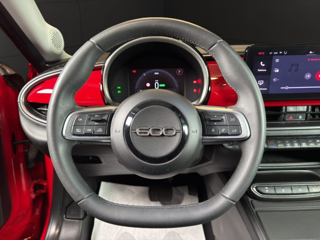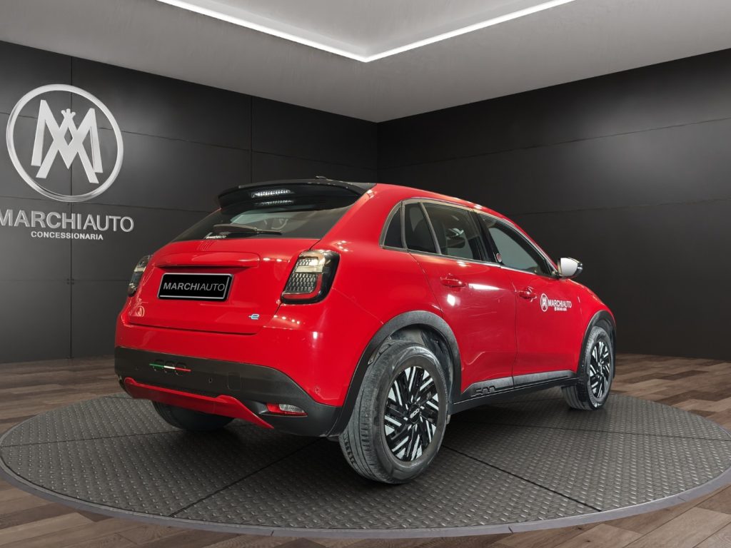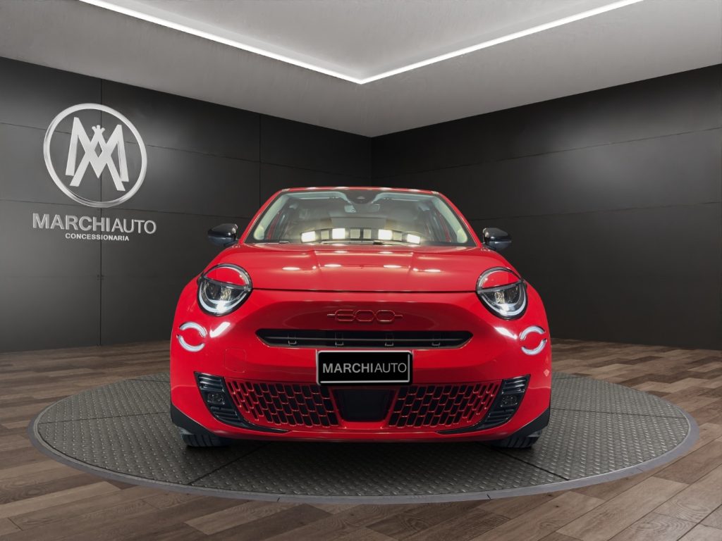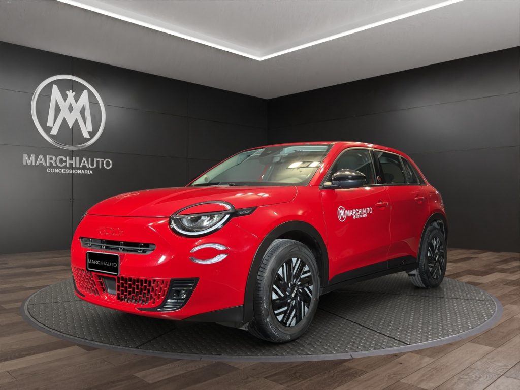 Marchi Auto propone Fiat 600e Red 54Kw usata, motore ZEuro alimentato a Elettrica, cambio automatico a 1 marce, cavalli fiscali / 62 kwatt. Carrozzeria di colore rosso pastello, auto omologata per 5 persone. Gli interni di questa FIAT 600e sono in tessuto colore grigio. Optionals inclusi nel prezzo: ABS, Airbag, Airbag laterali, Airbag Passeggero, Airbag testa, Autoradio, Autoradio digitale, Bluetooth, Bracciolo, Chiusura centralizzata, Climatizzatore, Controllo trazione, Cruise Control, ESP, Fari LED, Fendinebbia, Frenata d'emergenza assistita, Immobilizzatore elettronico, Sensore di luce, Sensore di pioggia, Sensori di parcheggio posteriori, Servosterzo, Specchietti laterali elettrici. MARCHIAUTO