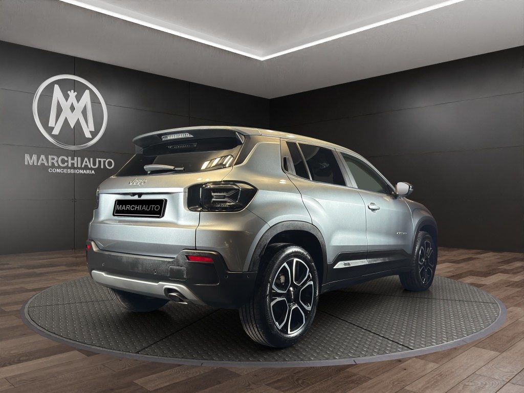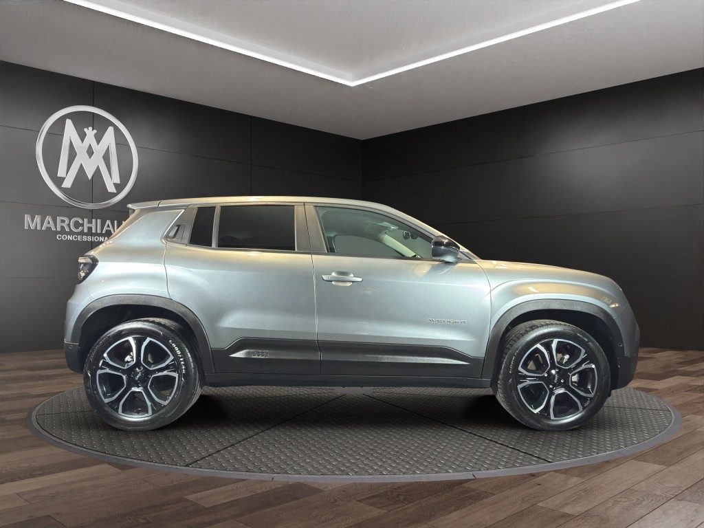Marchi Auto propone Jeep Avenger 1.2 Turbo 110 CV MHEV Summit usata, auto dotata di motore 1199cc 6T ad alimentazione ibrida, funzionante ad energia elettrica e benzina. cambio sequenziale a 6 marce, 14 cavalli fiscali / 74 kwatt. Carrozzeria di colore grigio metallizzato, auto omologata per 5 persone. Gli interni di questa JEEP Avenger sono in tessuto colore nero. Optionals inclusi nel prezzo: ABS, Adaptive Cruise Control, Airbag, Airbag laterali, Airbag Passeggero, Airbag testa, Alzacristalli elettrici, Android Auto, Apple CarPlay, Autoradio, Autoradio digitale, Bluetooth, Boardcomputer, Bracciolo, Car Play, Cerchi in lega, Chiusura centralizzata, Climatizzatore, Controllo trazione, Cruise Control, ESP, Fari LED, Fendinebbia, Frenata d'emergenza assistita, Immobilizzatore elettronico, MP3, Porta USB, Sensore di luce, Sensore di pioggia, Sensori di parcheggio posteriori, Servosterzo, Specchietti laterali elettrici, Telecamera per parcheggio assistito, Touch screen, USB, Vetri oscurati, Vivavoce, Volante multifunzione. MARCHIAUTO