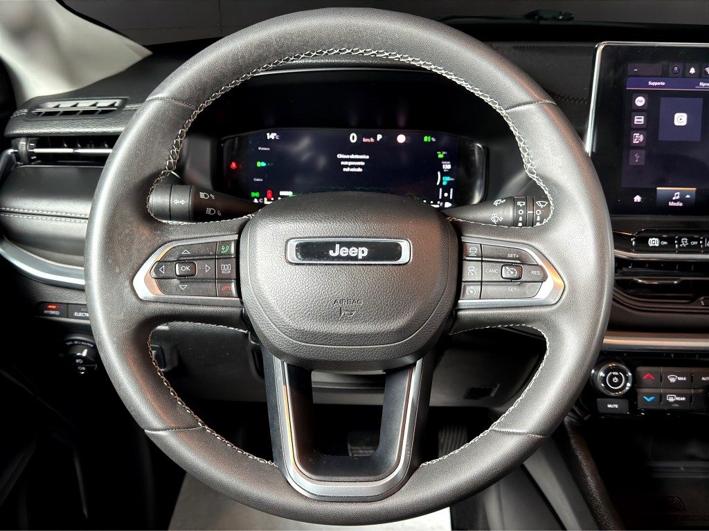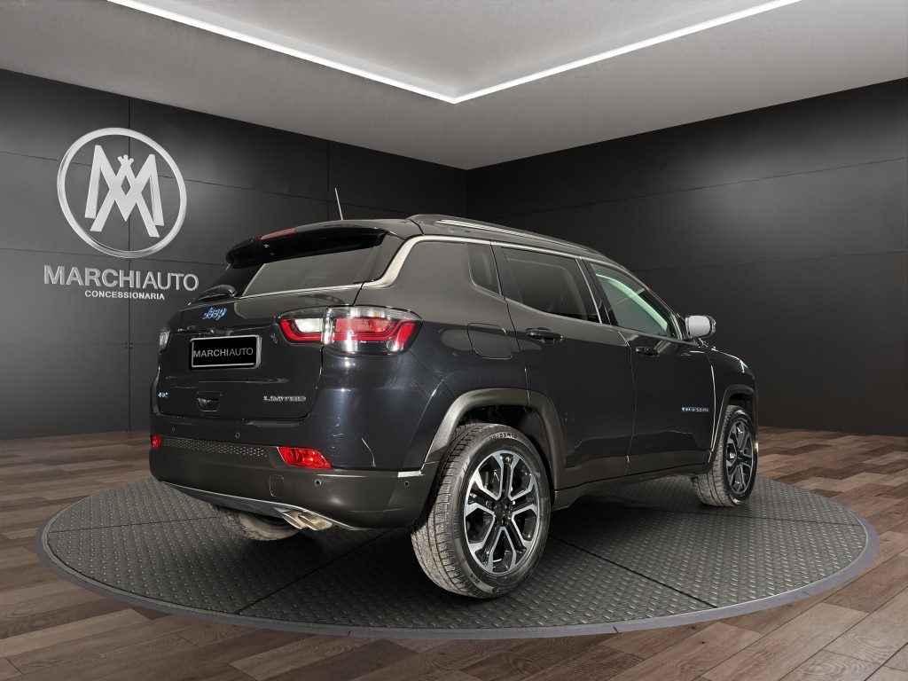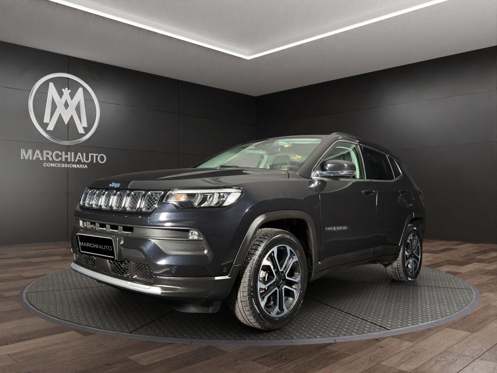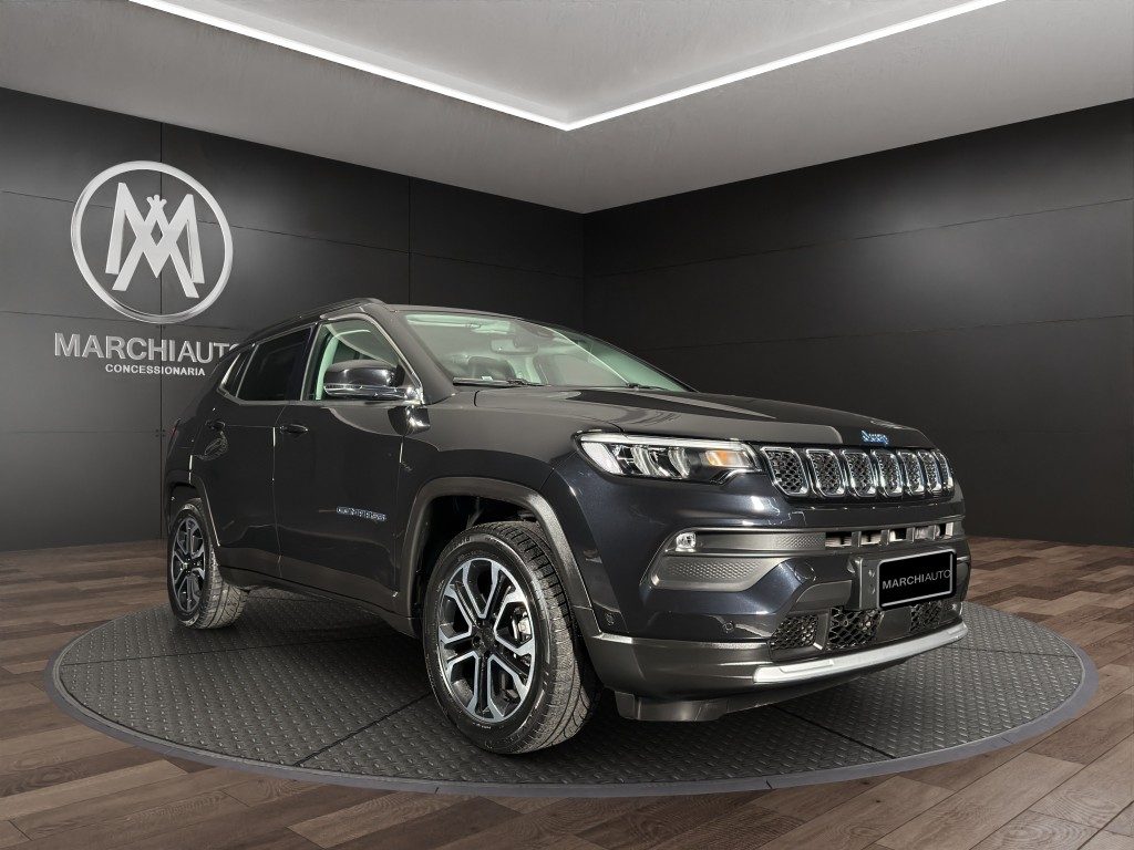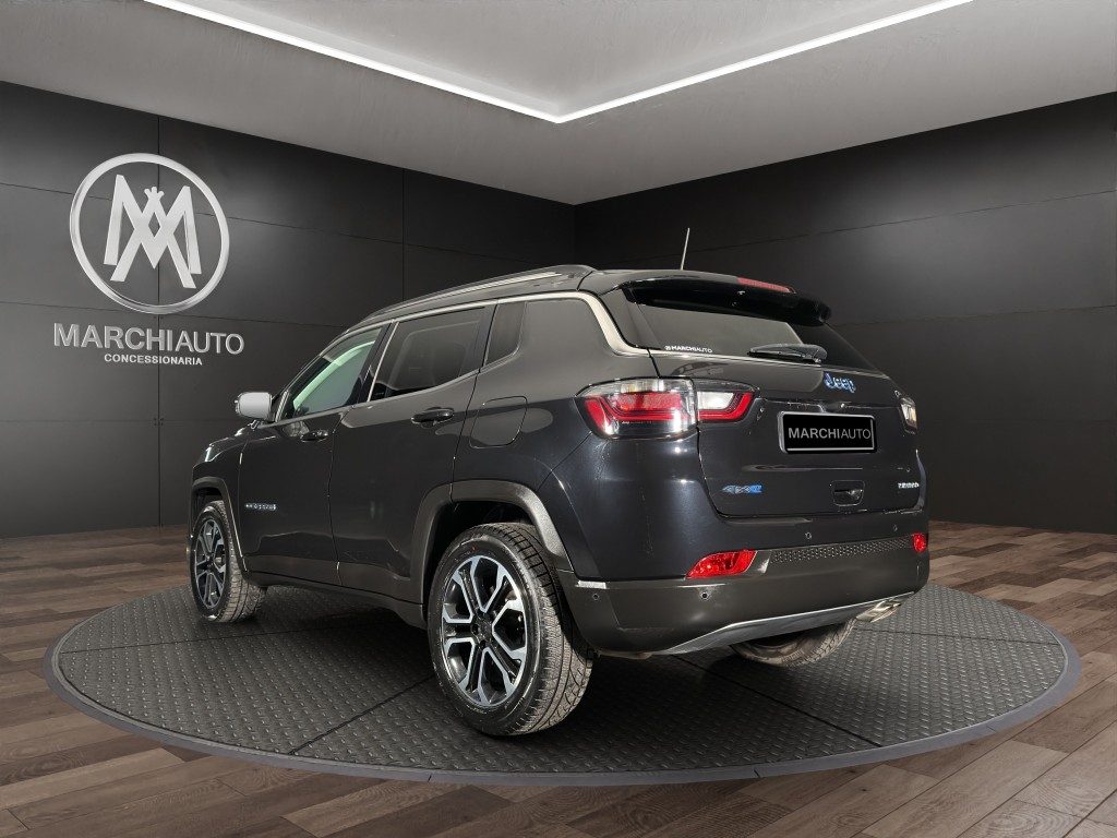 Marchi Auto propone Jeep Compass 1.3 Turbo T4 190 CV PHEV AT6 4xe Limited usata, auto dotata di motore 1332cc 6T ad alimentazione ibrida, funzionante ad energia elettrica e benzina. cambio automatico a 6 marce, 15 cavalli fiscali / 96 kwatt. Carrozzeria di colore nero metallizzato, auto omologata per 5 persone. Gli interni di questa JEEP Compass sono in pelle/tessuto colore nero. Optionals inclusi nel prezzo: 360° camera, ABS, Adaptive Cruise Control, Airbag, Airbag laterali, Airbag testa, Alzacristalli elettrici, Android Auto, Antifurto, Apple CarPlay, Autoradio, Autoradio digitale, Bluetooth, Boardcomputer, Cerchi in lega, Chiusura centralizzata, Chiusura centralizzata telecomandata, Climatizzatore, Controllo elettronico della corsia, Controllo trazione, Cruise Control, ESP, Fari LED, Fendinebbia, Frenata d'emergenza assistita, Immobilizzatore elettronico, MP3, Sensori di parcheggio posteriori, Servosterzo, Specchietti laterali elettrici, Telecamera per parcheggio assistito, Touch screen, USB, Vivavoce, Volante multifunzione. MARCHIAUTO