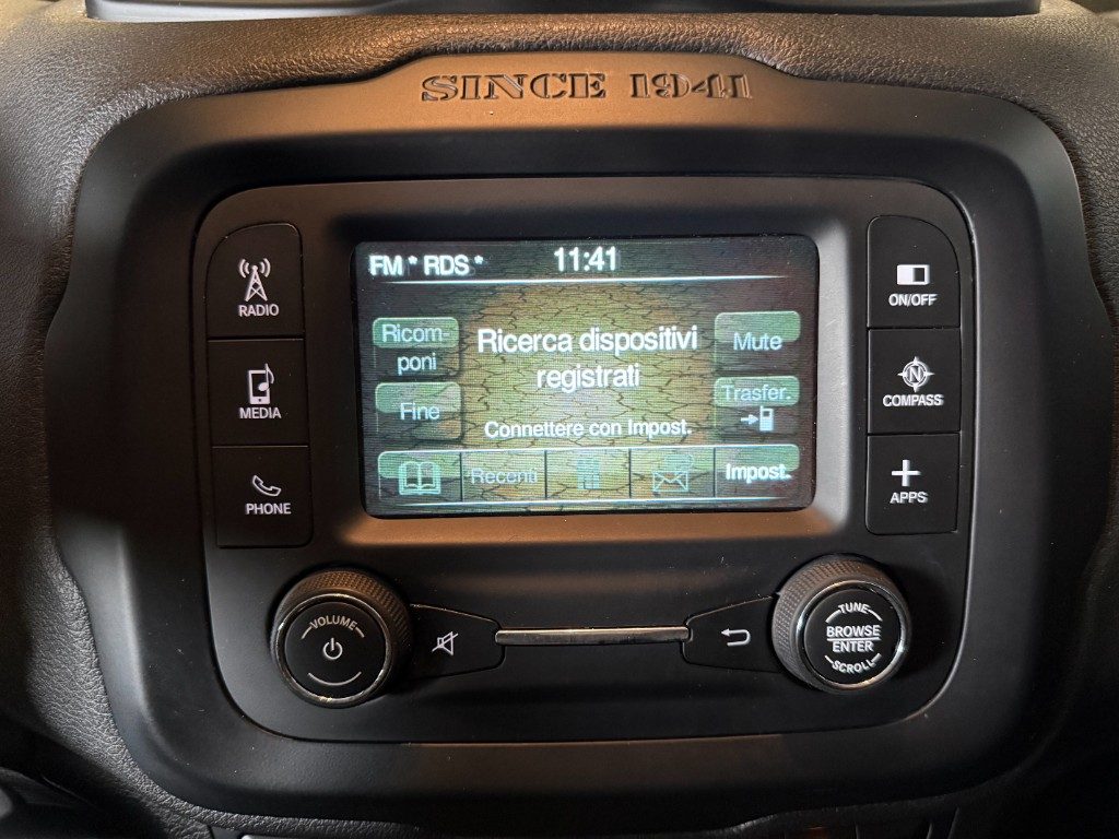 Marchi Auto propone Jeep Renegade 1.6 Mjt 120 CV Limited usata, motore 1598cc Euro 6 Diesel, cambio manuale a 6 marce, 17 cavalli fiscali / 88 kwatt. Carrozzeria di colore nero metallizzato, auto omologata per 5 persone. Gli interni di questa JEEP Renegade sono in tessuto colore grigio. Optionals inclusi nel prezzo: ABS, Airbag, Airbag laterali, Airbag Passeggero, Airbag testa, Alzacristalli elettrici, Autoradio, Bluetooth, Bracciolo, Cerchi in lega, Chiusura centralizzata, Climatizzatore, Controllo elettronico della corsia, Controllo trazione, Cruise Control, ESP, Fendinebbia, Frenata d'emergenza assistita, Immobilizzatore elettronico, MP3, Regolazione elettrica sedili, Sensori di parcheggio posteriori, Servosterzo, Specchietti laterali elettrici, Touch screen, USB, Vetri oscurati, Vivavoce, Volante multifunzione. MARCHIAUTO